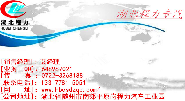 [公 司]: 程力專用汽車股份有限公司 [網(wǎng) 址]: m.dubeiwang.com/ [郵 箱]: 1297429942@qq.com [傳 真]:0722-3261099 [業(yè)務(wù) QQ]:648987021 [聯(lián)系電話]:133 7781 5051 [銷售經(jīng)理]:艾經(jīng)理 [郵政編碼]:441300 [公司地址]:湖北省隨州市南郊平原崗程力汽車工業(yè)園 [公 司]: 湖北龍晨特種汽車裝備有限公司