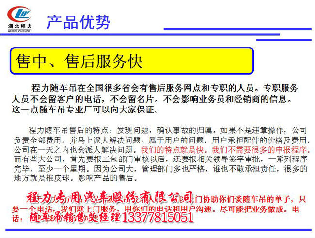 [公 司]: 程力專用汽車股份有限公司 [網(wǎng) 址]: m.dubeiwang.com/ [郵 箱]: 1297429942@qq.com [傳 真]:0722-3268188 [業(yè)務(wù) QQ]:648987021 [聯(lián)系電話]:133 7781 5051 [銷售經(jīng)理]:艾經(jīng)理 [郵政編碼]:441300 [公司地址]:湖北省隨州市南郊平原崗程力汽車工業(yè)園 [公 司]: 湖北龍晨特種汽車裝備有限公司