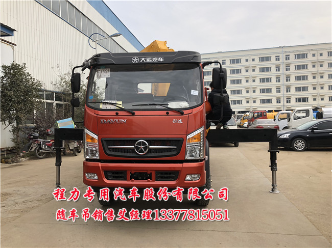 大運6.3噸藍牌隨車起重運輸車:大運牌DYQ5040JSQD5AB型隨車起重運輸車外形尺寸(mm) 5995×2240,2350,2500×2980,3300,貨廂尺寸(mm) 3200,3400,3500×2100,2300×400,底盤型號DYQ1040D5AA,輪胎規(guī)格8.25R16 6PR;