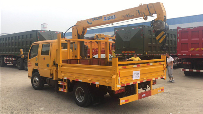 藍(lán)牌東風(fēng)雙排隨車吊:大力牌DLQ5040JSQST5型隨車起重運(yùn)輸車外形尺寸(mm)輪胎規(guī)格7.00-16.5995×2350×2650貨廂尺寸(mm)2500,2450×2150×380.YC4FA115-50發(fā)動(dòng)機(jī)型號(hào),