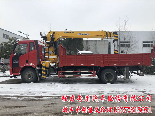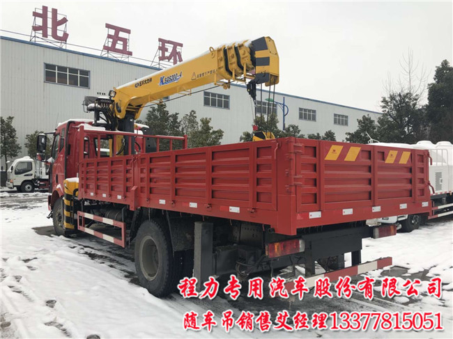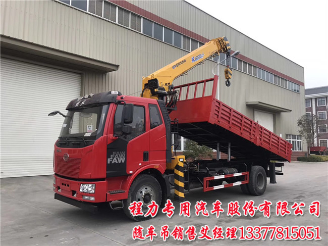 CA解放隨車吊價(jià)格J6解放隨車起重運(yùn)輸車配置:一般配8噸吊機(jī),也可配6.3噸5噸四噸吊,再說一下價(jià)格,因每一個(gè)用戶要求不一樣,比如配吊機(jī)大小,車廂加裝自卸,加裝灑水罐,在大臂上加裝工作斗,一般配8噸標(biāo)配大廂,隨車吊價(jià)格在26萬左右,加裝多功能隨車吊自卸加一萬,加裝7方水罐加二萬,加裝工作斗加1000元.下面介紹CA解放隨車吊配置: