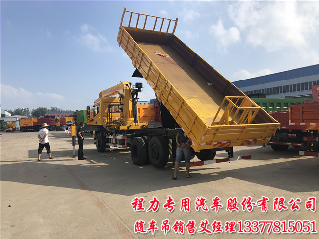 假三軸十通帶自卸兩用隨車吊13噸寬剎后橋+氣囊提升橋