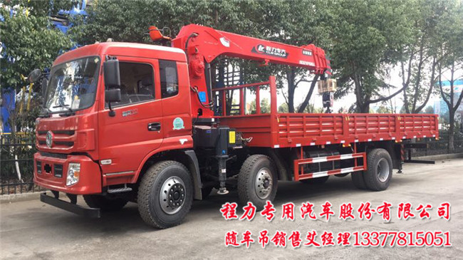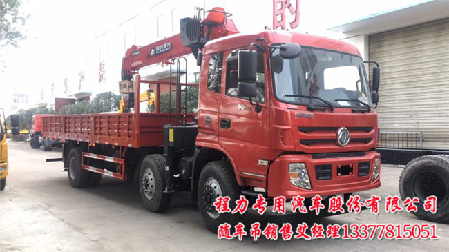 東風御虎前四后四隨車吊配置:法士特大8檔變速箱帶原廠取力器,前橋5T,后橋10T速比5.571,1100鋼絲胎,出廠ABS下防護.吊機按用戶要求配10噸12噸14噸,300幅面局部三層加強車架.