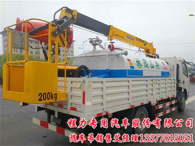 東風(fēng)藍(lán)牌多功能隨車吊帶灑水罐帶霧炮帶高空作業(yè)斗:現(xiàn)在的用戶大部分都要上藍(lán)牌,還要發(fā)動(dòng)機(jī)馬力大,輪胎大,加裝自卸,加裝灑水罐,還要加裝霧炮,還可在大臂頂端加一個(gè)工作斗,做到一車多用.所以,為了滿足用戶要求,廠家可以按用戶要求來生產(chǎn),滿足用戶需求,今天說說藍(lán)牌隨車吊帶水罐帶霧炮帶工作斗車型.