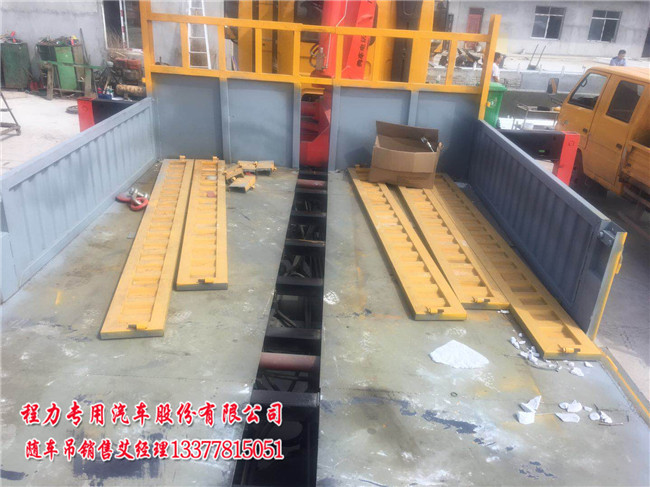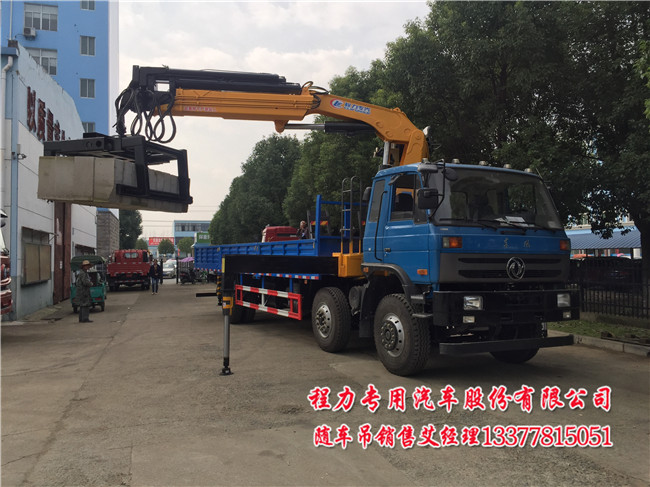 夾磚隨車吊_拉磚隨車吊與普通隨車吊不同:這里主要是指車廂要加固及車廂申縮.吊機必須用折臂,加360旋轉夾具.