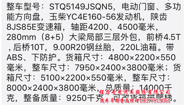 十通153縮短橋隨車起重運(yùn)輸車軸距為:后橋153縮短4200/4500(160馬力)T3創(chuàng)客排半駕駛室,電動門窗、多功能方向盤,玉柴YC4E160-56發(fā)動機(jī),陜齒8JS85E變速箱,280mm(8+5)大梁局部三層外包,前橋151,后橋153縮短,9.00R20鋼絲胎,220L鋁合金油箱。帶ABS、下防護(hù)。貨箱可帶爬梯