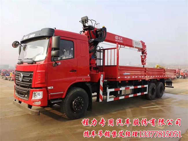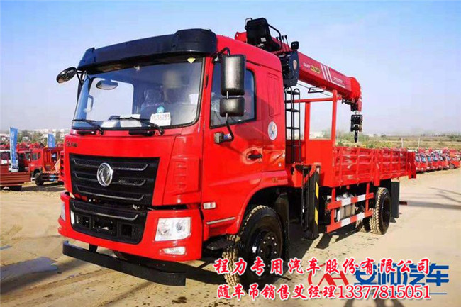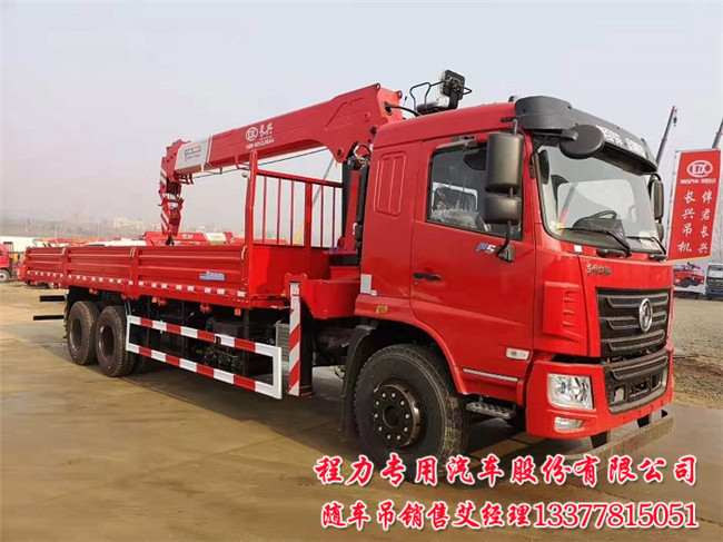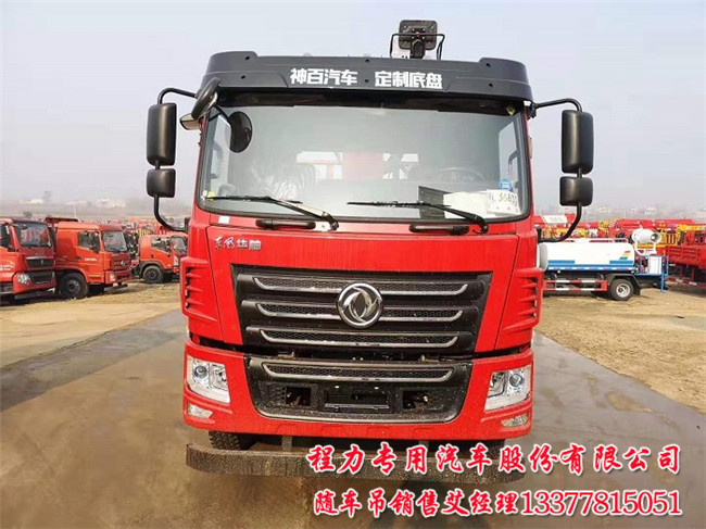 東風華神F5后雙橋隨車吊配吊機:一般12噸徐工吊機-K型12.5米_M型14.5米(加一萬)_G型(再加一萬),這個就是你出多少錢,就給你對應吊機.這個選吊機看用戶需不需要長吊機.各有所需.再說說車廂,有標配,加固邊三底四,加自卸車廂.在車廂加水罐有灑水車功能,大臂頂端加吊藍等多功能隨車吊.