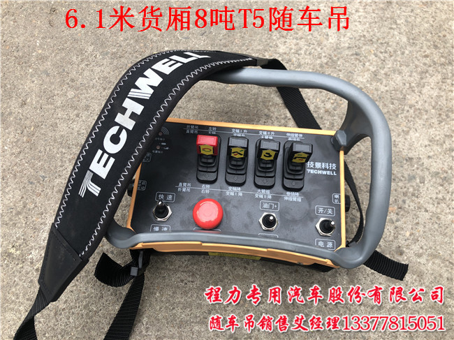 上海技景遙控器(國內(nèi)一線品牌)與T5單排隨車吊配8噸吊貨廂6.1米內(nèi)尺寸:先說說用戶為什么要購這款車子,因這款比普通同款車子要貴好多(5.6米貨廂),用戶購車?yán)b箱首選,現(xiàn)在有些地方規(guī)定拉貨不能超出車廂,所以6米集裝箱正好。拉工地鋼管+6米長加上自卸車廂更方便。還有就是用戶購車要多拉貨,車廂就要長點并且又不超公告規(guī)定T5隨車吊配8噸吊機6.1米貨相并且200大馬力。