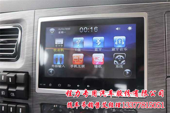 只有齊星駕駛室有液晶顯示屏,180玉柴6.3噸8噸10噸東風(fēng)錦程隨車吊165馬力濰柴錦程隨車吊_液晶顯示屏_倒車影像,MP5,手機(jī)藍(lán)牙互聯(lián),高配置,,原裝派恩空調(diào),氣囊座椅,鋁合金油箱儲(chǔ)氣筒,兩點(diǎn)懸浮、電動(dòng)玻璃.陜齒8JS85E.前后橋5T / 10T,300mm局部三層.10.00R20.