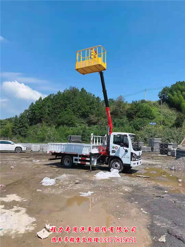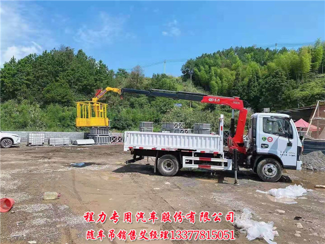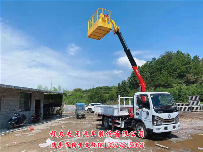 1.8噸東風(fēng)多利卡藍(lán)牌隨車(chē)吊按用戶(hù)要求加裝一個(gè)工作斗,360度全旋轉(zhuǎn),裝在吊臂頂端,可以站一個(gè)人上面按裝路燈(修理路燈),綠化樹(shù)剪枝及可按 裝廣告牌等等業(yè)務(wù),讓用戶(hù)做到一車(chē)多用回本快的目的。廠家見(jiàn)意再加兩條后支腿,在操作高空作業(yè)斗時(shí)更安全。