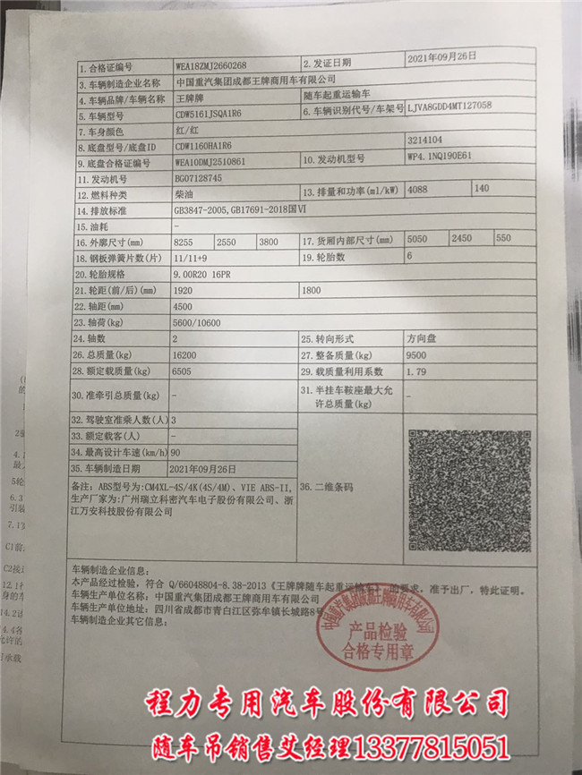 7噸6.3噸8噸4500軸距重汽王牌隨車(chē)吊公告車(chē)型】隨車(chē)起重運(yùn)輸車(chē)【整車(chē)型號(hào)】CDW5161JSQHA1R6【選裝吊機(jī)】6.3噸, 7噸 , 8噸【外形尺寸】8255×2550×3700【貨箱尺寸】5050×2450×550【軸距】4500【發(fā)動(dòng)機(jī)】WP4.1NQ190E61【變速箱】法士特8檔(8JS85F)【馬力】濰柴190馬力【總質(zhì)量】16200kg【整備質(zhì)量】8970kg【額定載質(zhì)量】7035kg。