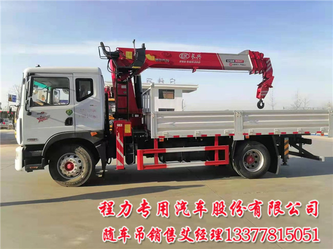 8噸多利卡D9隨車吊配置:原廠空調(diào)、中控鎖、電動(dòng)門窗、ABS、斷氣剎、排氣制動(dòng)、三年100萬公里超長質(zhì)保。上裝吊機(jī):長興8噸4節(jié)臂吊機(jī),單腔液壓后支腿,5.2米標(biāo)配貨箱.公告型號(hào):AAA5185JSQE6發(fā)動(dòng)機(jī):東風(fēng)康明斯發(fā)動(dòng)機(jī)有限公司,康明斯195馬力,發(fā)動(dòng)機(jī)型號(hào)D4.0NS6B195。變速箱:法士特八檔變速箱(帶高低檔)前后橋:前橋5噸、后橋9噸(東風(fēng)原廠德納)輪胎:10.00R20鋼絲胎軸距:4500mm大梁:250雙層直通大梁外形尺寸:8400×2500,2550×3500,3600,3700mm貨箱尺寸:5200×2350×550,600mm總質(zhì)量:18000KG整備質(zhì)量:10500KG、11000KG、額定載貨質(zhì)量:7305、6805KG.