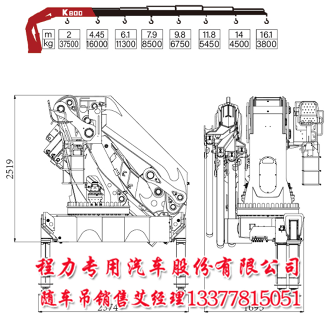 40噸宏昌天馬折臂隨車吊大臂長(zhǎng)16.1米,在2米吊37.5噸;在4.5米吊16噸;在6.1米吊13噸;在7.9米吊8.5噸;在9.8米吊6.75噸;在12米吊5.4噸;在14米吊4.5噸;在16.1米吊3.8噸;