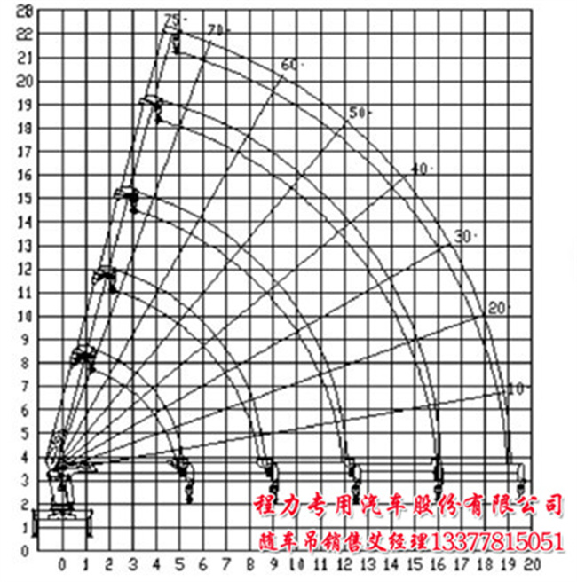 中聯(lián)14T隨車吊吊機(jī)平面圖:在2.2米吊15噸,在2.5米吊14噸,在4米吊8.7噸,在5米吊7噸,在6米吊5.3噸,在7米吊4.5噸,在8米吊3.9噸,在9米吊3噸,在10米吊2.7噸,在12米吊噸2.1,在15米吊1.6噸,在18米吊1.2噸,在19米吊1.1噸。