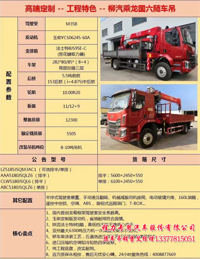 單排8噸貨廂6米1隨車吊10噸乘龍6.1米隨車吊質(zhì)量好價格貴柳汽乘龍單排8噸6米1貨廂隨車吊10噸乘龍6.1米隨車吊配徐工8噸四節(jié)乘龍6.1米隨車吊,8噸新款G型吊乘龍6.1米隨車吊,三一四節(jié)五節(jié)8噸乘龍6.1米隨車吊,宏昌天馬8噸五節(jié)六節(jié)隨車吊,大力神四節(jié)五節(jié)U型臂隨車吊,吊機品牌很多,產(chǎn)生的價格也不一樣,車廂內(nèi)尺寸6.1米,可加厚加固加長加高。