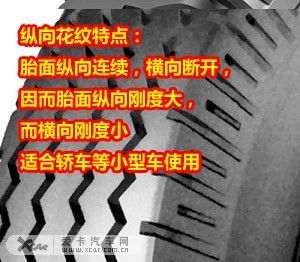 這種花紋共同特性是胎面縱向連續(xù),橫向斷開,因此胎面縱向剛度大,而橫向剛度小,輪胎抗滑才能呈現(xiàn)出橫強(qiáng)而縱弱的特征。這種花紋輪胎的滾動阻力較小,散熱性能好,但花紋溝槽易被嵌入碎石子兒。綜合來看,這種型式花紋合適在比擬清潔、良好的硬路面(如城市道路和高速公路)上行駛。例如,轎車、輕、微型貨車等多選擇這種胎紋。