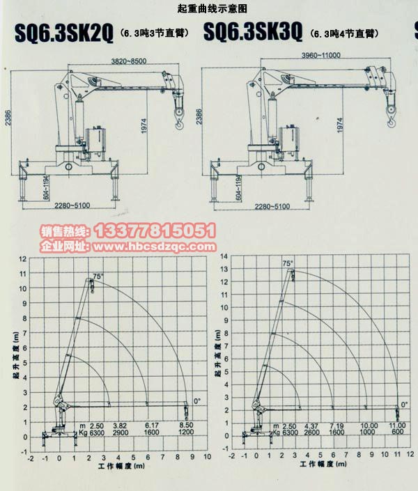 SQ6.3SK2Q噸三節(jié)直臂吊機(jī)(舉升高度11米 ,工作半徑8.5.米) 最大起重量是6.3T,最小起重量是1.2噸