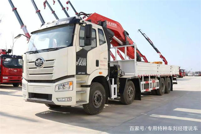 解放J6前四后八隨車吊配吊機:14噸16噸常配;18噸12噸為選配-折臂與直臂都可配。