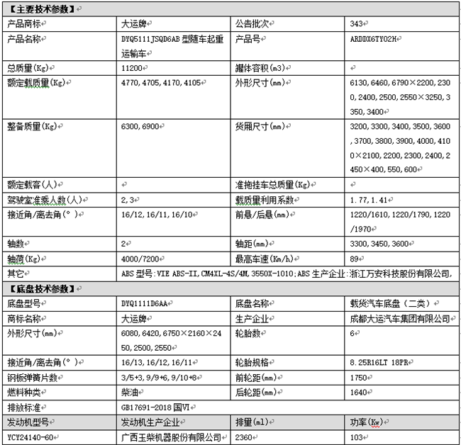 底盤型號:DYQ1111D6AA 額定質(zhì)量:4670