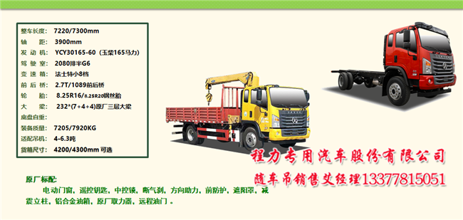 5噸至14噸大運隨車吊系列產(chǎn)品,不同軸距,不同貨廂,不同發(fā)動機(jī),有兩款特殊車型提升橋最大優(yōu)點是自重輕,拉貨多,配吊機(jī)大和短軸距后雙橋隨車吊車廂短到6.7米,