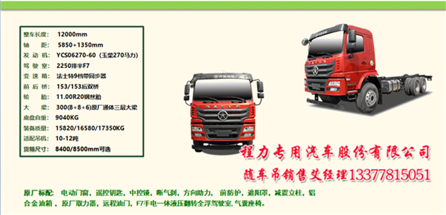 底盤型號:DYZ5242JSQD6CB 額定質(zhì)量:10200