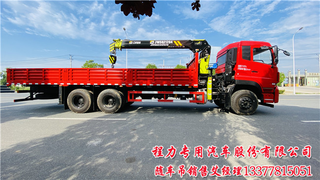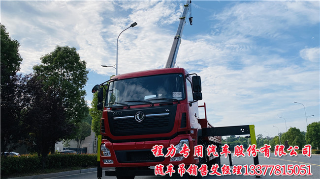 江威12噸14噸東風天龍3軸后8輪隨車吊配置:天龍駕駛室,軸距:5700+1350,沃爾沃 DDi75E300-60發(fā)動機,11.00R20鋼絲胎,法士特9JS135TA OD,前橋5噸/10噸*2天龍后雙橋隨車吊。