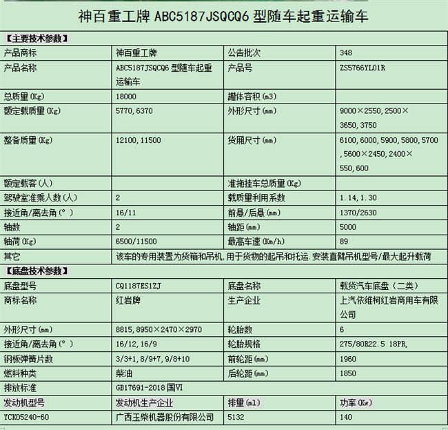 紅巖隨車(chē)吊參數(shù):