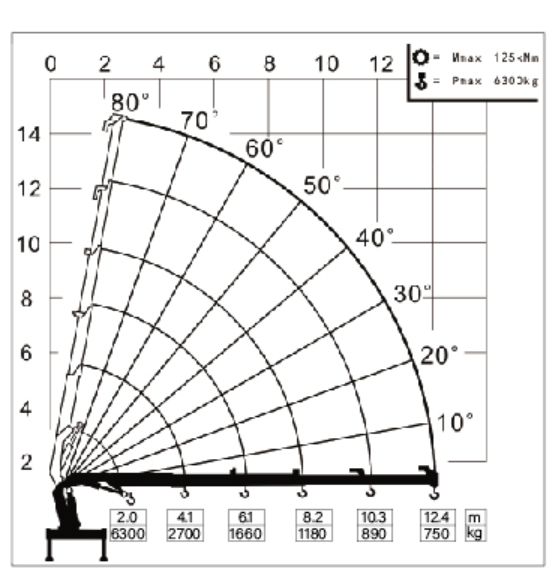 6.3噸宏昌天馬折臂隨車吊吊參數(shù):大臂長(zhǎng)12.4米