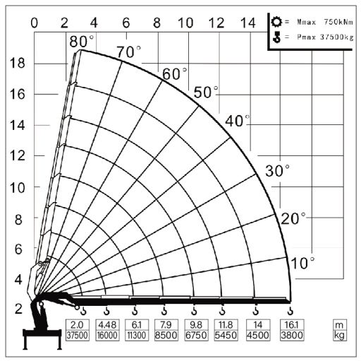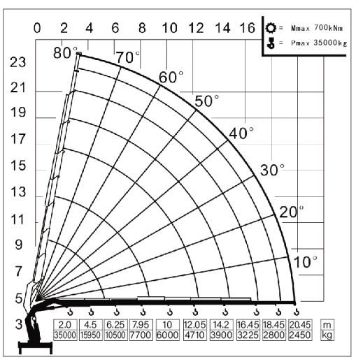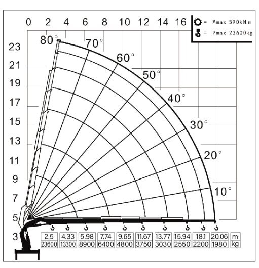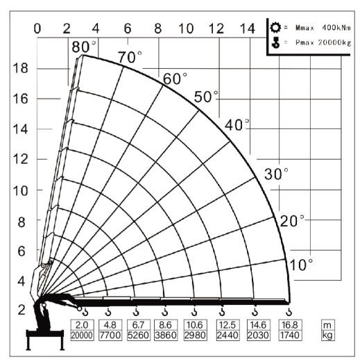 20噸宏昌天馬折臂隨車吊吊參數(shù):大臂長(zhǎng)16.8米