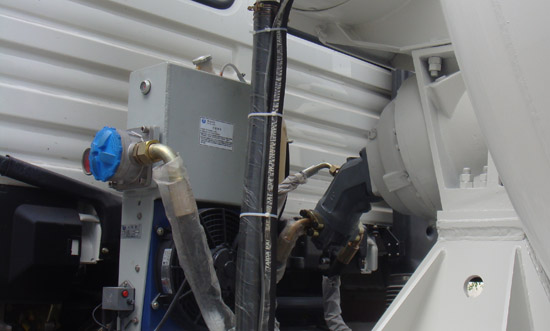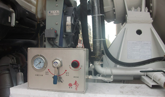 ※ 供水系統(tǒng) :混凝土攪拌車的供水系統(tǒng)主要用來清洗攪拌裝置。該車型的供水系統(tǒng)共有兩種型式,一種是離心水泵供水系統(tǒng);一種是壓力水箱供水系統(tǒng),可供用戶選裝。
