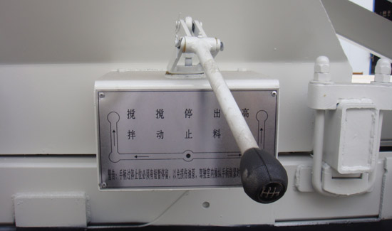 ※ 操縱系統(tǒng) :是整個攪拌車的控制部件,操縱面板上開有“工字形”槽,是操縱桿的活動空間;并且后半部的槽上開有限位孔,用來固定操縱桿的位置。該操縱系統(tǒng)通過汽車尾部的左右兩個操縱桿來控制攪拌筒的正、反轉和轉速,從而來完成進出料以及攪拌動作。