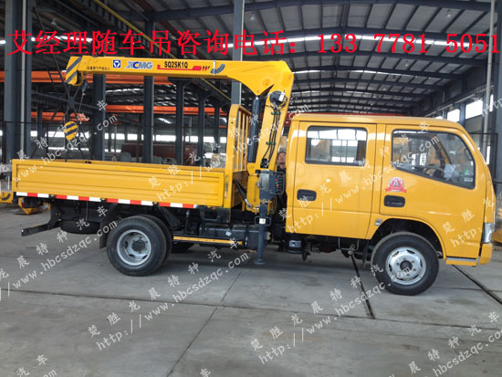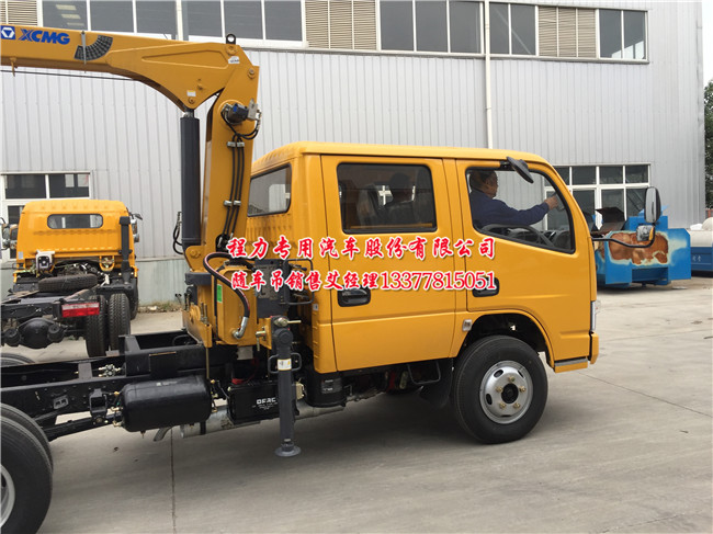 東風(fēng)雙排隨車吊上藍(lán)牌帶吊貨車