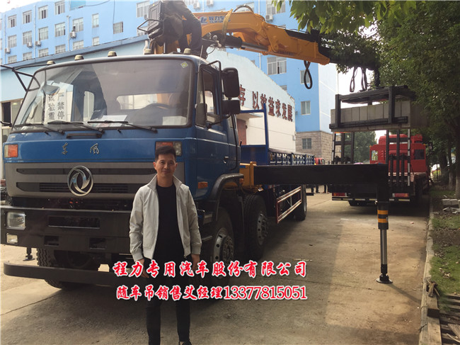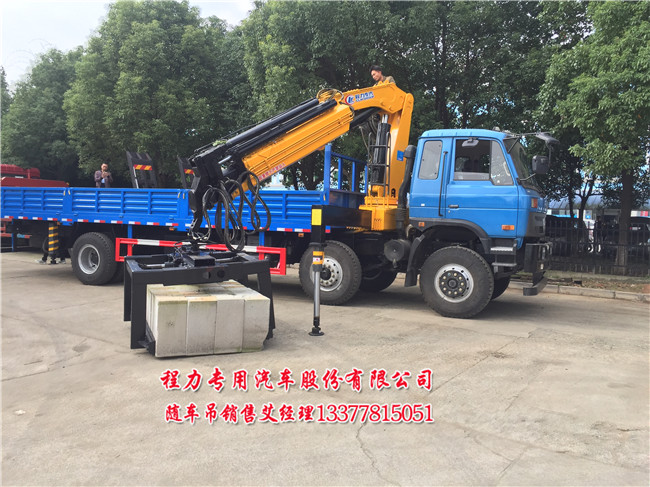 夾磚隨車吊小三軸夾磚隨車起重運輸車配的是12噸折臂吊機:
