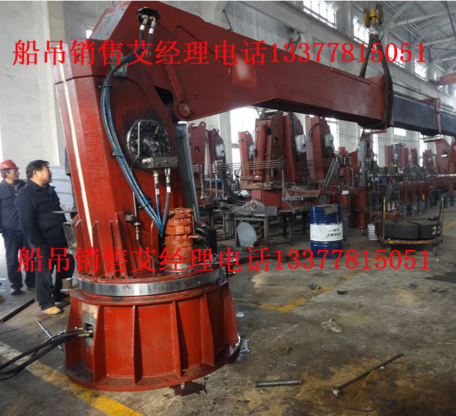 55噸折臂大噸位船吊及38噸大噸位車間車吊:船吊也可叫港口起重機、船用起重機、船尾吊,由吊桿、起重柱(或起重桅)、索具和絞車.