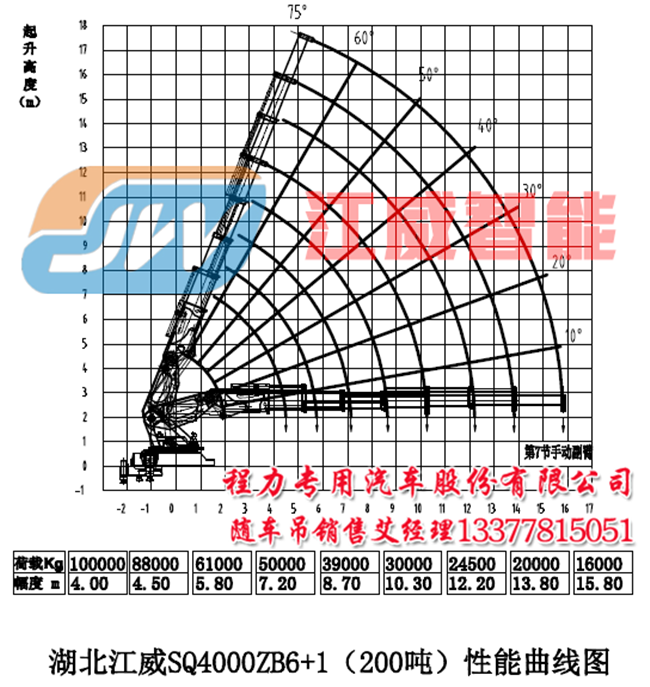 SQ4000ZB江威隨車吊曲線圖,更能清楚體現(xiàn)在幾米 之內(nèi)吊幾噸位