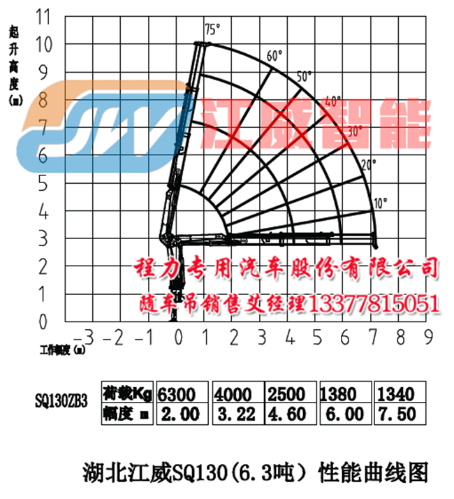 折臂6.3噸江威隨車(chē)吊吊機(jī)性能曲線圖