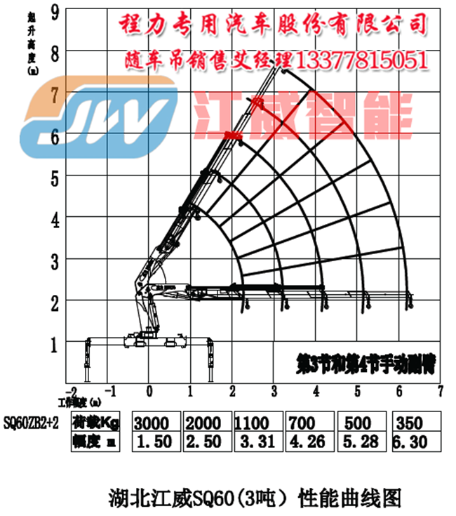 折臂3噸江威隨車(chē)吊吊機(jī)性能曲線圖