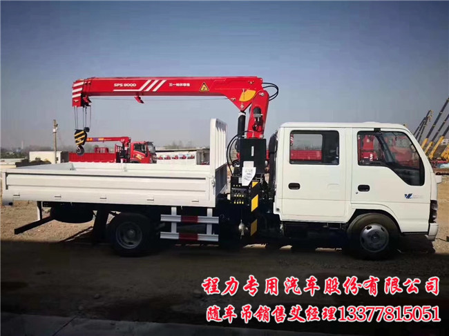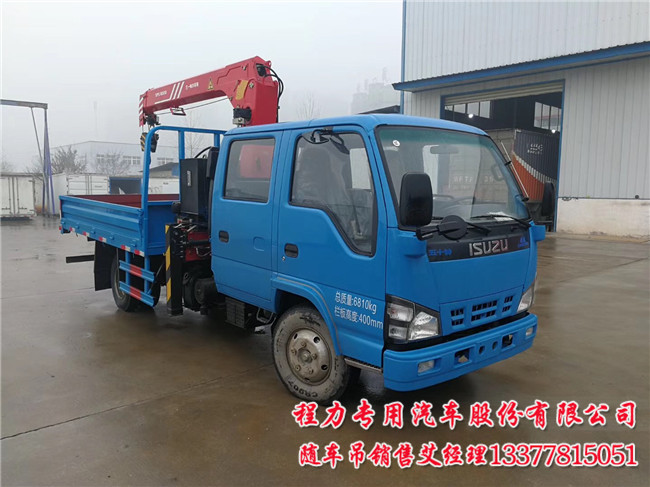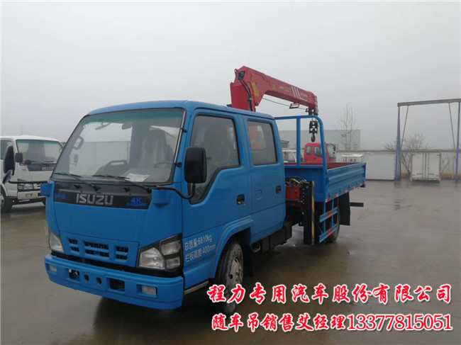 SYP五十鈴慶鈴雙排隨車吊上黃牌:KV100底盤配置:寬體700P駕駛室型號簡稱為KV100.五十鈴4KH1CN5LS發(fā)動機國五排放98馬力,五十鈴MSB五檔變速器,帶空調(diào),方向助力,前橋2.5噸,后橋4.8噸,帶ABS,標配700R16輪胎,雙回路式油剎。單排駕駛室可翻轉.