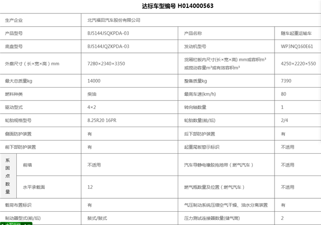 底盤型號(hào):BJ5144JSQKPDA-03 額定質(zhì)量:6415