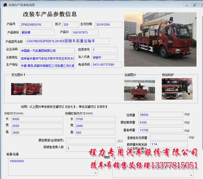 6.3噸8噸解放隨車(chē)吊公告查詢(xún)圖
