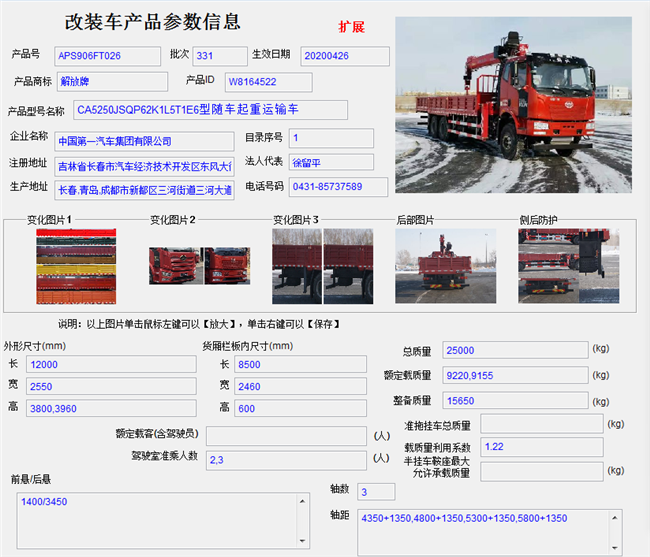 14噸12噸解放后雙橋隨車吊國網(wǎng)參數(shù):