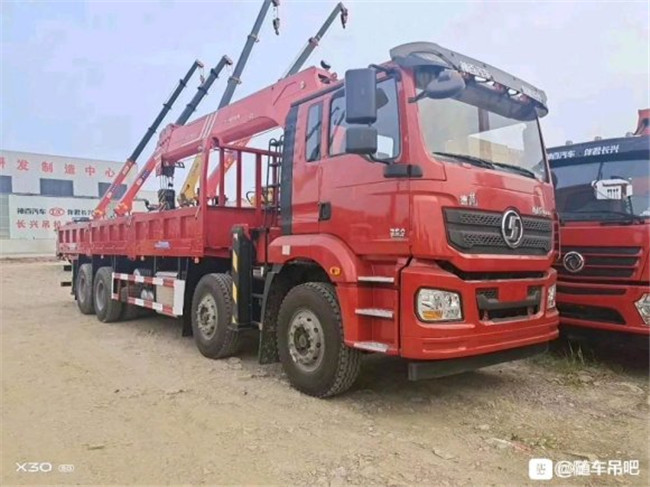 國六陜汽德龍前四后八隨車吊配置:350大馬力-濰柴350馬力WP9H350E62,軸距2100+4750+1400,九檔變速箱,16噸渦邊減速后橋,300三層直通大梁,原廠空調(diào),12.00R20 18PR鋼絲胎,整備質(zhì)量 20.3噸,可上裝12噸20噸各款品牌吊機(jī),整車自重不超重。