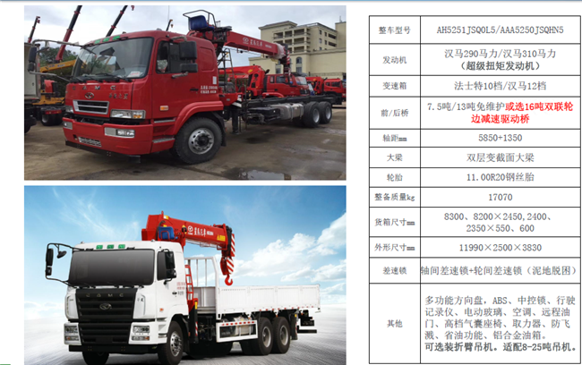 牽引頭華菱隨車吊配置  上圖     16噸-38噸