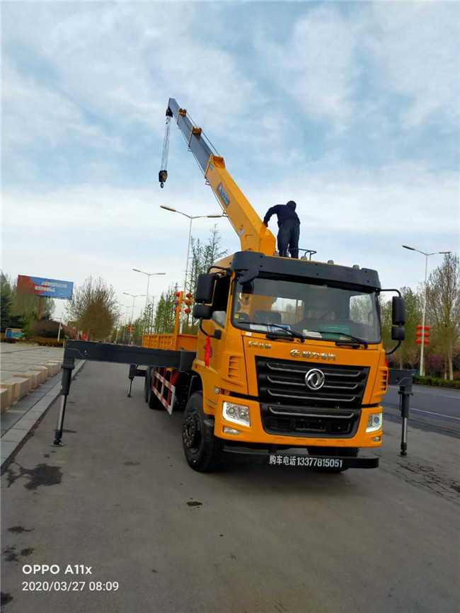 12噸程力專汽吊東風F5后雙橋隨車吊東風神宇后八東風新款D913車身豪華內(nèi)飾,電動玻璃,斷氣剎,帶ABS,下防護,遠程油門,新法規(guī), 法士特9檔變速箱,車架300mm雙層(局部三層)直通大梁, 5T/10T前后橋, 11.00R20鋼絲胎,帶動力轉(zhuǎn)向、取力器,