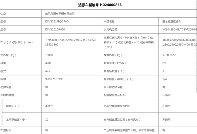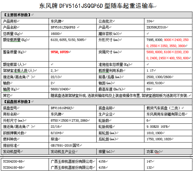 6.1米暢行8噸D1隨車(chē)吊 :公告參數(shù)
