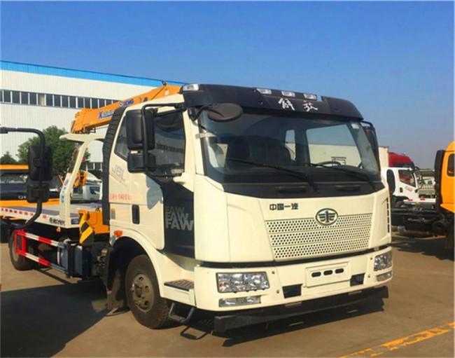 國六解放J6一拖二隨車吊-多功能清障帶吊
